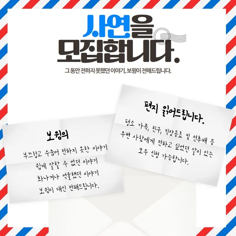 Step 1. 첨부되어 있는 '사연 신청 양식' hwp 또는 word 파일 작성